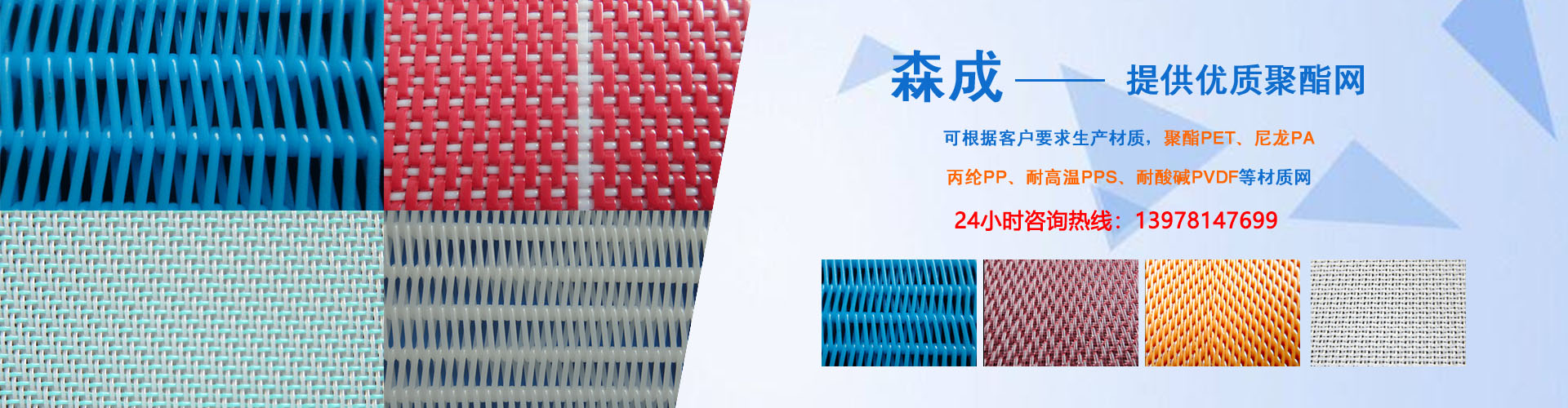 同時(shí)主導(dǎo)產(chǎn)品還有:聚酯成型網(wǎng),聚酯平織干網(wǎng)、聚酯螺旋干網(wǎng)、聚酯銅絲抗靜電網(wǎng),主要用于造紙、環(huán)保、印染、洗煤、石油化工、制藥、食品烘干、人造板廠、冶金、電廠脫硫、礦業(yè)、發(fā)酵等行業(yè)。公司產(chǎn)品具有耐酸堿、耐高溫、濾水好、透氣好、尺寸運(yùn)行穩(wěn)定的特點(diǎn),憑質(zhì)優(yōu)價(jià)廉及優(yōu)良的售前、售后服務(wù)暢銷國(guó)內(nèi)還可以根據(jù)用戶要求生產(chǎn)各種規(guī)格型號(hào)的特殊用網(wǎng),其長(zhǎng)度、寬度、密度可根據(jù)用戶要求臨時(shí)確定,產(chǎn)品質(zhì)量上乘,在廣大客戶中享有很高的聲譽(yù)。 p>